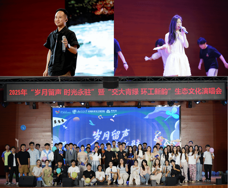 “交大青绿 环工新韵”生态文化演唱会将活动推向高潮。舞台上,同学们倾情献唱,用动听的歌声呼吁师生践行绿色生活理念,展现交大学子的责任与情怀。这场视听盛宴通过富有感染力的音乐,将生态文明理念深植于每位听众心中。