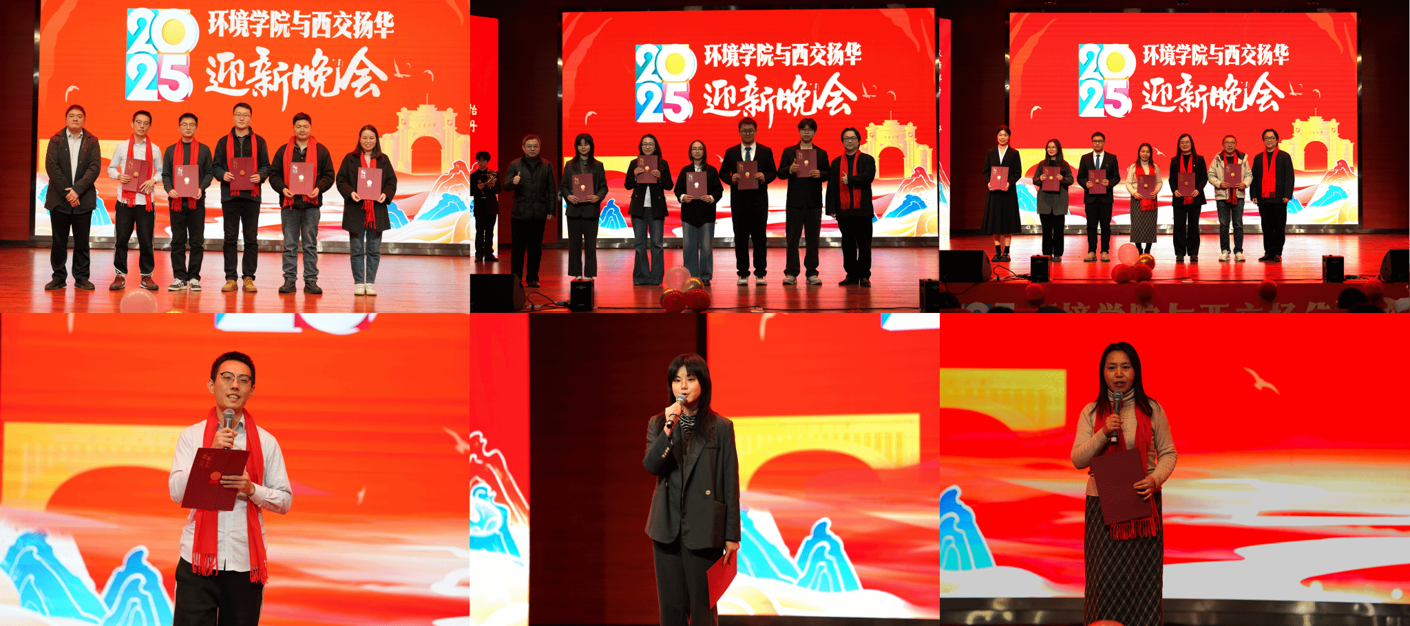 本次迎新晚会各篇章之间穿插三个仪式:2025 级班导师聘任仪式,副院长赵锐为班导师颁授聘书,李木老师作为代表向新生寄语,开启师生共育新篇; “西交扬华杯” 琢玉环境学生标兵表彰仪式中,甘霖书记与付永胜先生为获奖学子颁奖,孙思怡同学作为代表发言,以榜样力量激励新生奋进; 2025 年学院优秀党员、优秀党务工作者表彰仪式同步举行,甘霖老师为获奖代表颁发荣誉证书,张胜利老师作为代表发言,勉励师生以初心助力学院高质量发展。